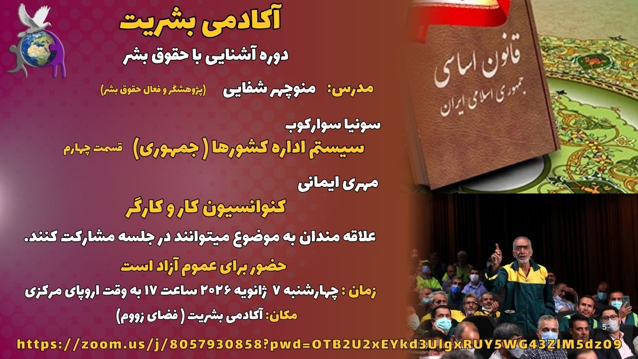 فراخوان جلسه مجمع عمومی ماهیانه کانون دفاع از حقوق بشر در ایران در تاریخ ۴ ژانویه ۲۰۲۶