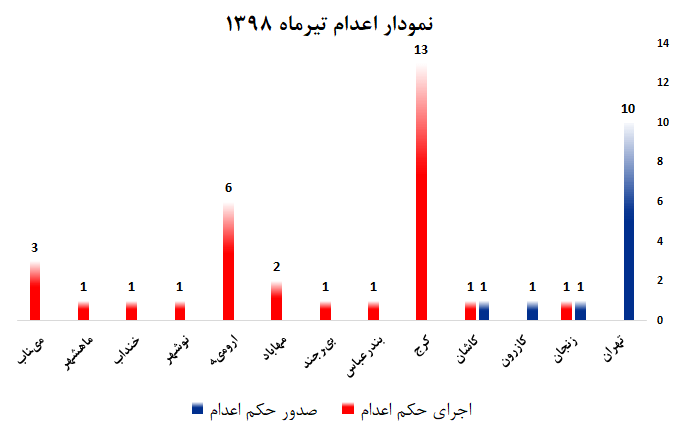 یک زندانی با هویت سعید متهم به “قتل” توسط شعبه دهم دادگاه کیفری یک استان تهران به اعدام محکوم شد. هرانا 25 تیر – تهران 1 نفر
