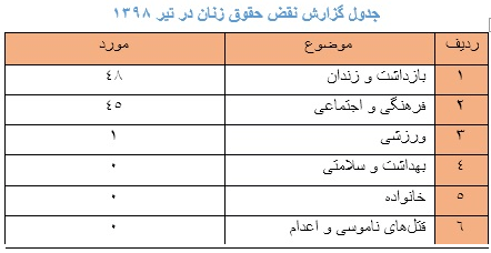 گزارشات ماهیانه کمیته دفاع از حقوق زنان از سایت کانون دفاع از حقوق بشر در ایرانکه از رسانه های داخلی و خارجی مانند ایسنا ؛ مشرق نیوز؛ رکنا ؛ رادیو زمانه ؛هرانا ؛ ایرنا ؛ایلنا ؛ رادیو صدای امریکا ؛رادیو بی بی سی ؛ ایران ؛ قطره ؛رادیو فردا ؛ سازمان حقوق بشر ایران ؛ باشگاه خبرنگاران جوان ؛ خبرگزاری مهر ؛ خبر گزاری خراسان ؛ روزنامه قانون ؛تسنیم و غیره جمع آوری گردیده است، تهیه و تدوین می شوند.