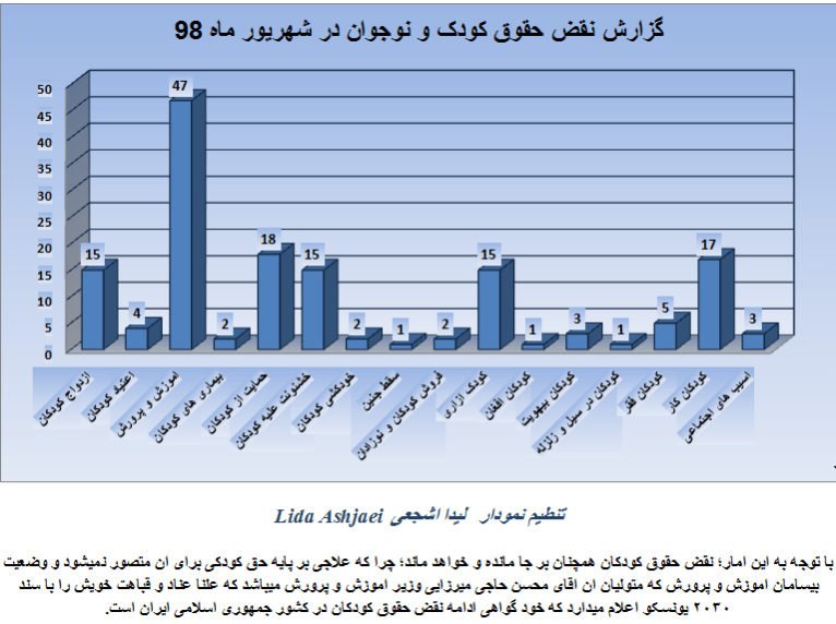 گزارش نقض حقوق کودک و نوجوان در شهریور ماه ۱۳۹۸