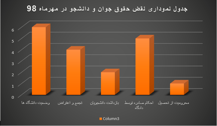 گزارش فوق از سایت کمیته جوان و دانشجو برگرفته از رسانه های داخلی و خارجی همچون هرانا، فارس، ایلنا، ایرنا، هه نگاو، کمپین فعالان بلوچ، جوان آنلاین، دانشجو آنلاین میباشد. لازم بذکر است که بدلیل سانسور شدید رسانه های وابسته به جمهوری اسلامی ایران و از سوی دیگر سرکوب فعالان و خبرگزاری های غیروابسته آمار فوق تنها درصد ناچیزی از نقض حقوق جوان و دانشجو در ایران میباشد. برای آگاهی و اطلاع بیشتر از نقض حقوق جوان و دانشجو در مهرماه ۱۳۹۸،میتوانید ازوبسایت کمیته دفاع از حقوق جوان و دانشجو بازدید فرمایید