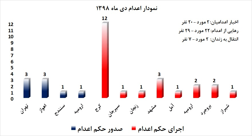 یادآوری: با توجه به سانسور خبری حاکم بر رسانه های ایران، آنچه در پی میآید گزارشی است کوتاه و فشرده ازنقض حقوق جامعه ایران در محدوده اعدام شهروندان طی دوره زمانی یک ماه گذشته که نمیتواند بازتابدهنده کامل قتل دولتی باشد.