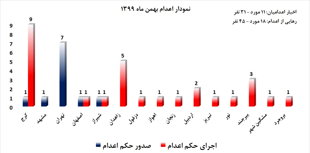 یادآوری: با توجه به سانسور خبری حاکم بر رسانه های ایران، آنچه در پی میآید گزارشی است کوتاه و فشرده ازنقض حقوق جامعه ایران در محدوده اعدام شهروندان طی دوره زمانی یک ماه گذشته که نمیتواند بازتابدهنده کامل قتل دولتی باشد.